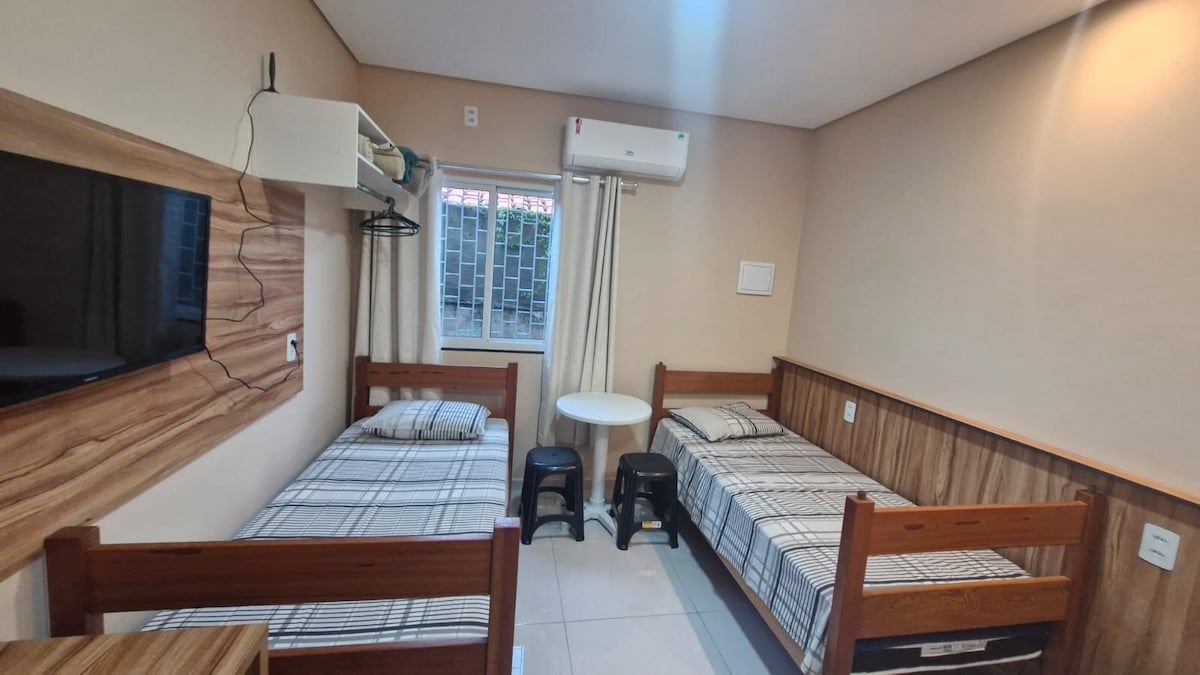 在這個安靜的中心空間簡化您的一天。如果您正在尋找在博阿維斯塔 (Boa Vista) 待上幾天的地方,無論是工作還是休閒,這裡都是理想的地方:一套配有電動門的公寓,每套公寓都有自己的遙控器,而且靠近藥店、超市和商店。配備齊全的廚房,配備您能想到的所有電器和用具,寬敞的套房,有線電視和Wi-Fi。