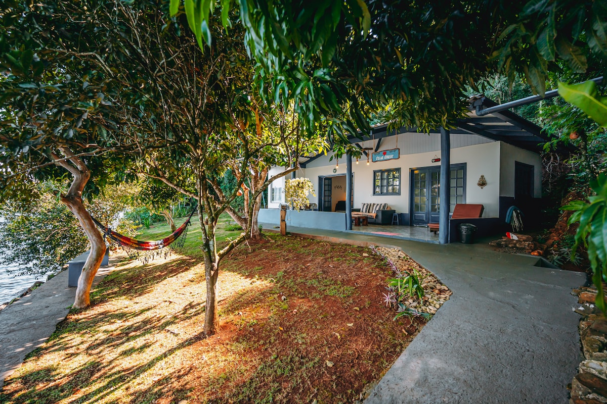 Casa ampla com pátio ideal para férias em família. A casa tem acesso privado as águas límpidas e quentes do alagado do rio Iguaçu com trapiche exclusivo! Garagem coberta para dois carros, Wi-Fi, tv aberta, ar condic nas 2 suítes, fogão a lenha, varanda e muita área verde com árvores frutíferas. Oferecemos roupas de cama e banho para sua hospedagem. Venha descansar em meio à natureza, apreciar o clima interiorano, o lindo pôr do sol e desfrutar dias incríveis nesta linda propriedade familiar!