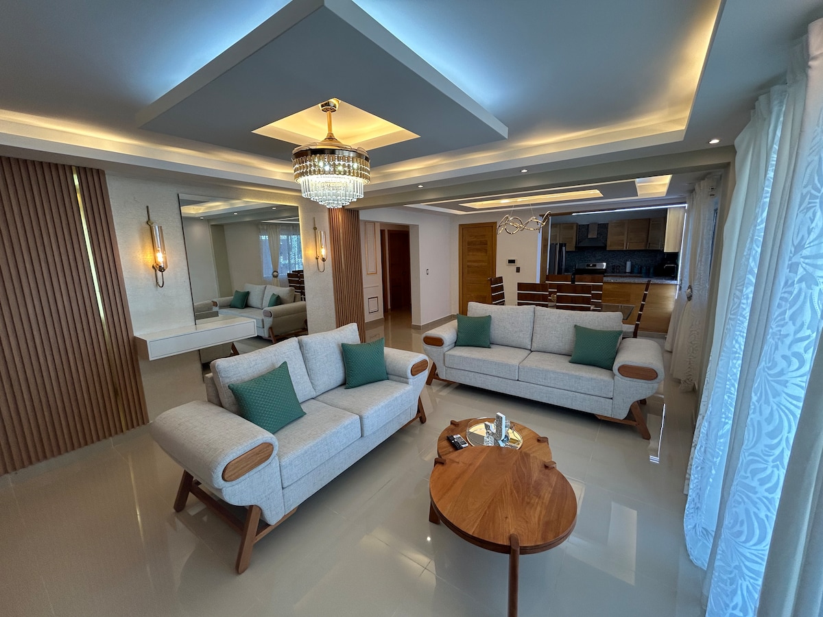 全新、非常乾淨和華麗的公寓,位於Bani ( Peravia Province ) ,靠近市中心。 這個迷人的起居空間擁有一切,讓您感到賓至如歸: 3間房間、1.8公尺寬雙人牀、空調、電視、2間浴室、洗衣機和烘乾機、發電機和設備精良的廚房。 房客可以使用泳池 我們提供,免費 -咖啡 - WiFi - 停車位 -碗盤遊戲 -舒適的牀/枕頭 -洗漱用品和沐浴乳 -智慧電視等 (泳池時間) 星期五至星期日 上午9: 00 下午6: 00