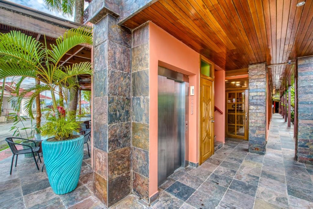 豪華套房,配有獨立臥室,配有1.8公尺寬雙人牀、廚房和起居區、可欣賞壯觀海景的陽臺、配有淋浴間的浴室、辦公桌、空調、配有研磨機和巴拿馬咖啡豆的咖啡壺、有線平面電視、上層、免費WiFi、大型優質窗戶和門、枕頭頂部牀墊、大理石或珊瑚瓷磚、竹地板、禁煙房、沙灘毛巾、雨傘、吹風機、洗衣服務、桌遊。