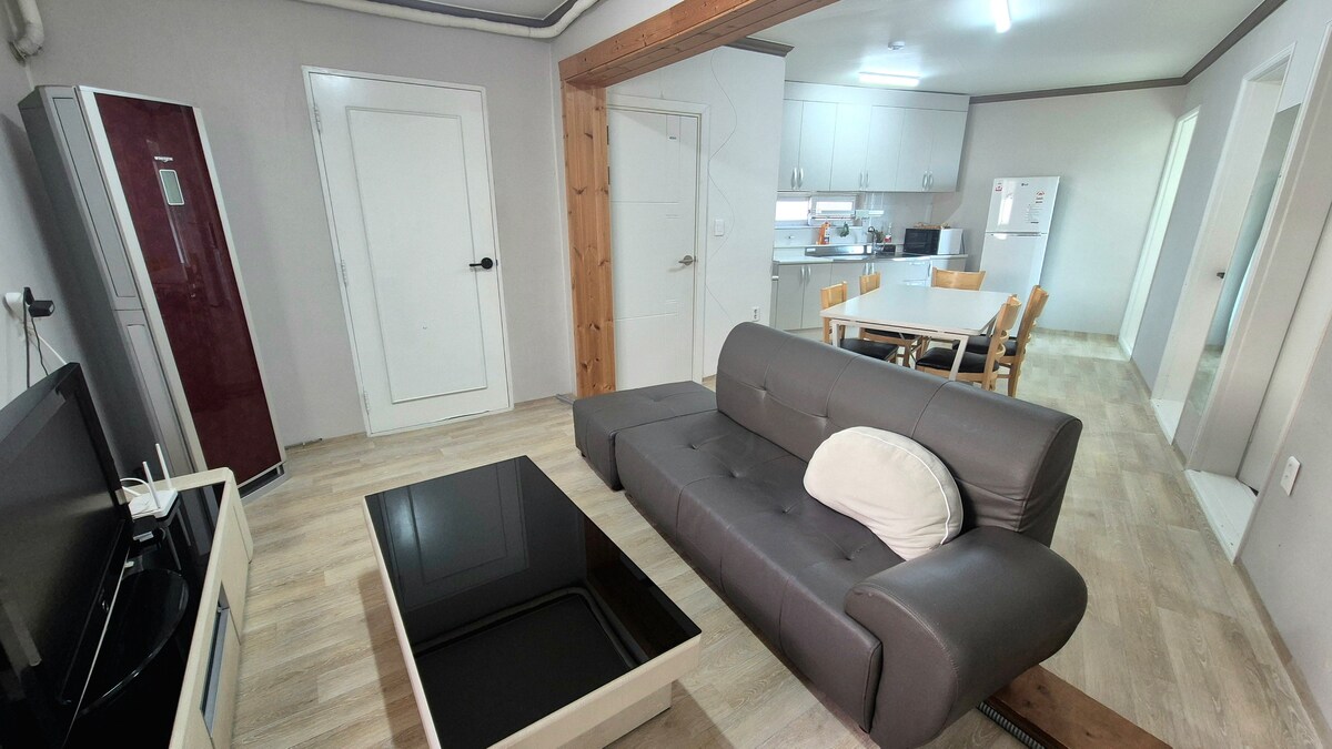 它毗鄰Yeongil大學海灘,從Yeongil大學步行3至5分鐘,從Yeongil大學步行5分鐘,步行15分鐘即可抵達Hwangho Park Space Walk。 它位於三層建築的第一層。 有大房間、小房間、前門、廚房、客廳、浴室、前門廊和後門廊。 步行1-2分鐘即可抵達許多便利店、餐廳、酒吧和汽車旅館。 這是自助入住。
