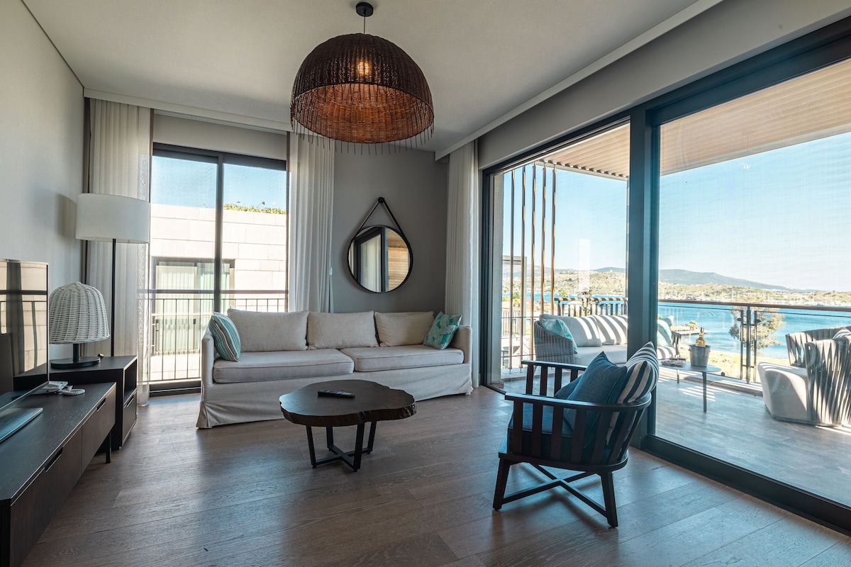 A lavishly designed 1-ensuite bedroom sea view flat located in the prestigious 5-star seafront Le Chic Residences Bodrum, offering breathtaking sea views and an exceptional luxury experience. This is a privately owned residence located within a prestigious hotel & residence concept resort. The hotel operates from mid-May through the end of October. During the hotel’s operational season, guests enjoy full complimentary access to all hotel amenities.