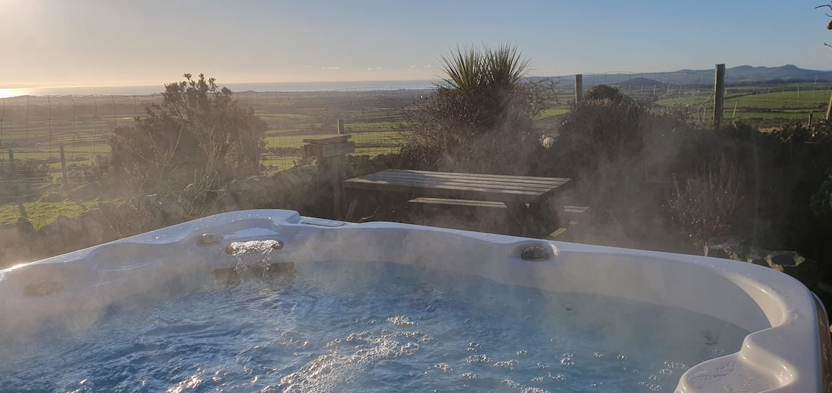 Hawddamor小屋,配有木材燃燒器和**按摩浴池**