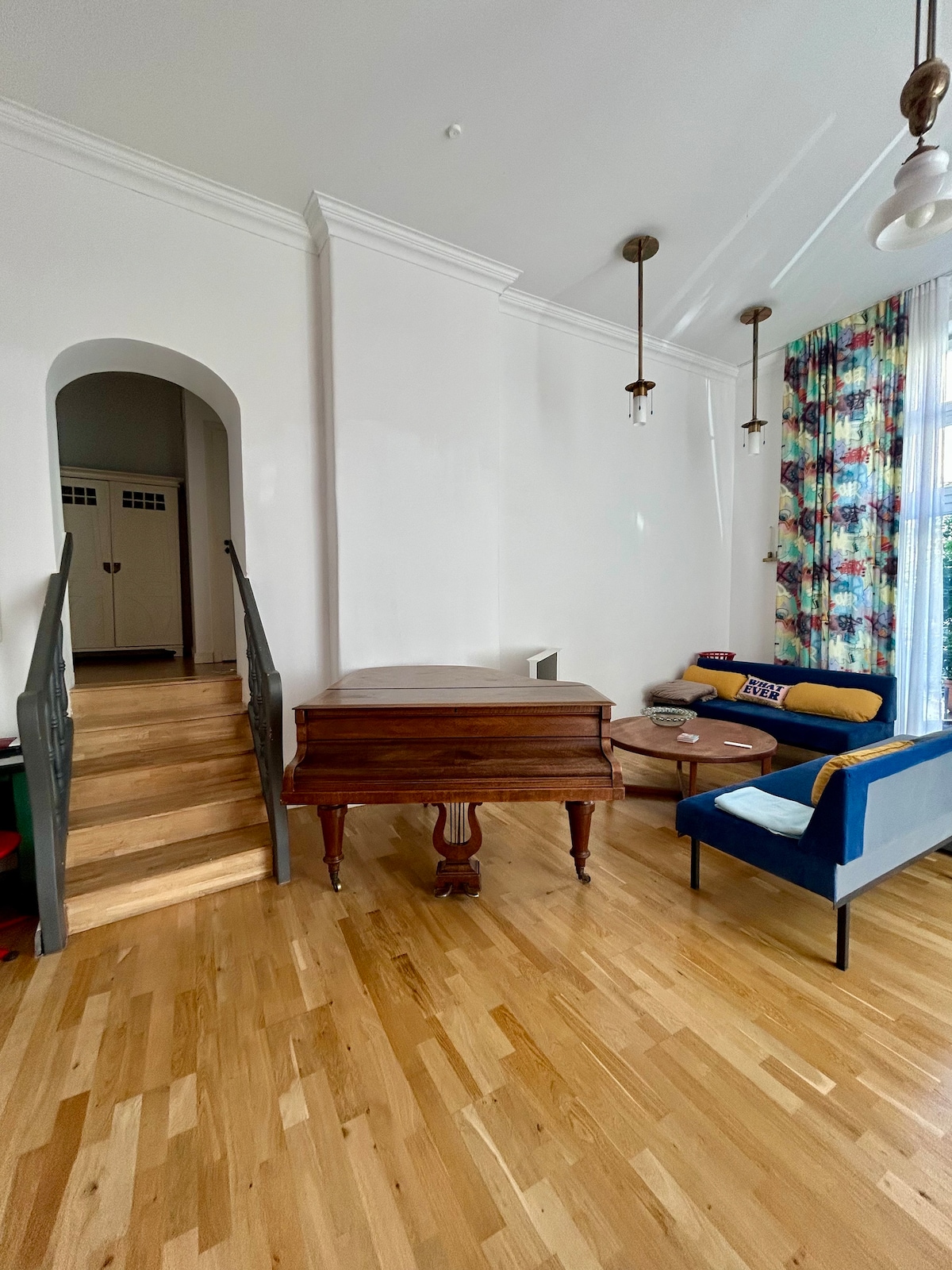 位於維克圖利恩市場 (Viktualienmarkt) 和加特納廣場 (Gärtnerplatz) 之間的絕對中心位置,安靜地坐落在一個有私人露臺的後院中,這間寬敞豪華的底層閣樓提供了一個市中心的隱藏之處。 一個特別的地方,一個非常特別的地方。 創意工作! • 天花板高度 3.20 公尺, • 3 間房間,配有 200x200 公分、160x200 公分、140x200 公分的床和大型開放式客廳 • 2 間浴室 • 開放式客廳和創意空間,Poggenpohl 廚房 第三間房間位於地下室/健身區。