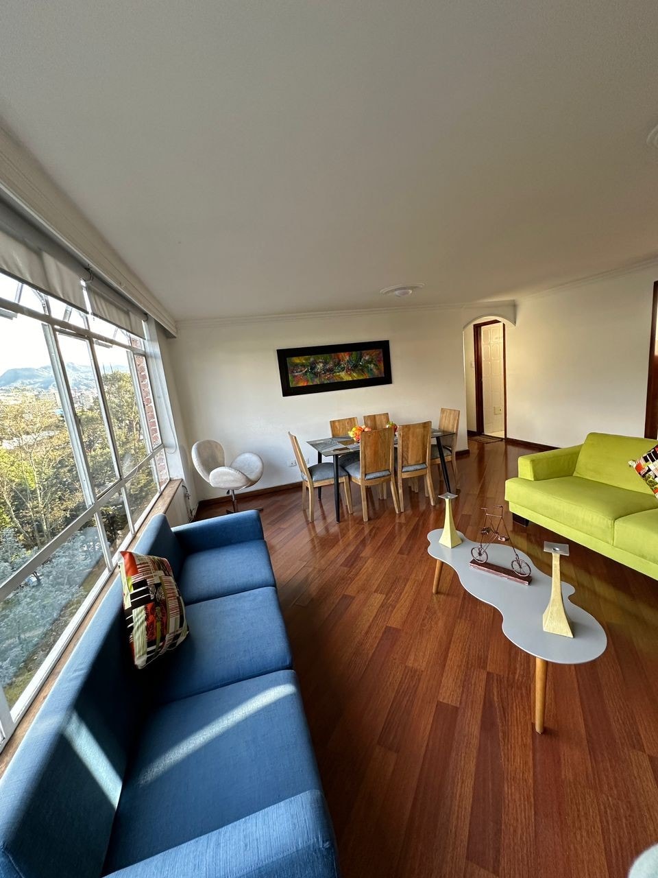 這間舒適的公寓可俯瞰波哥大的美景,是享受這座城市的最佳場所。 高速網路。靠近餐廳、咖啡廳、超市。位於波哥大市中心,大樓入口前面有方便的公共交通工具。 令人驚嘆的屋頂,360度景觀和烤肉區、健身房、會議室、自行車停車位和私人停車位。24小時保安