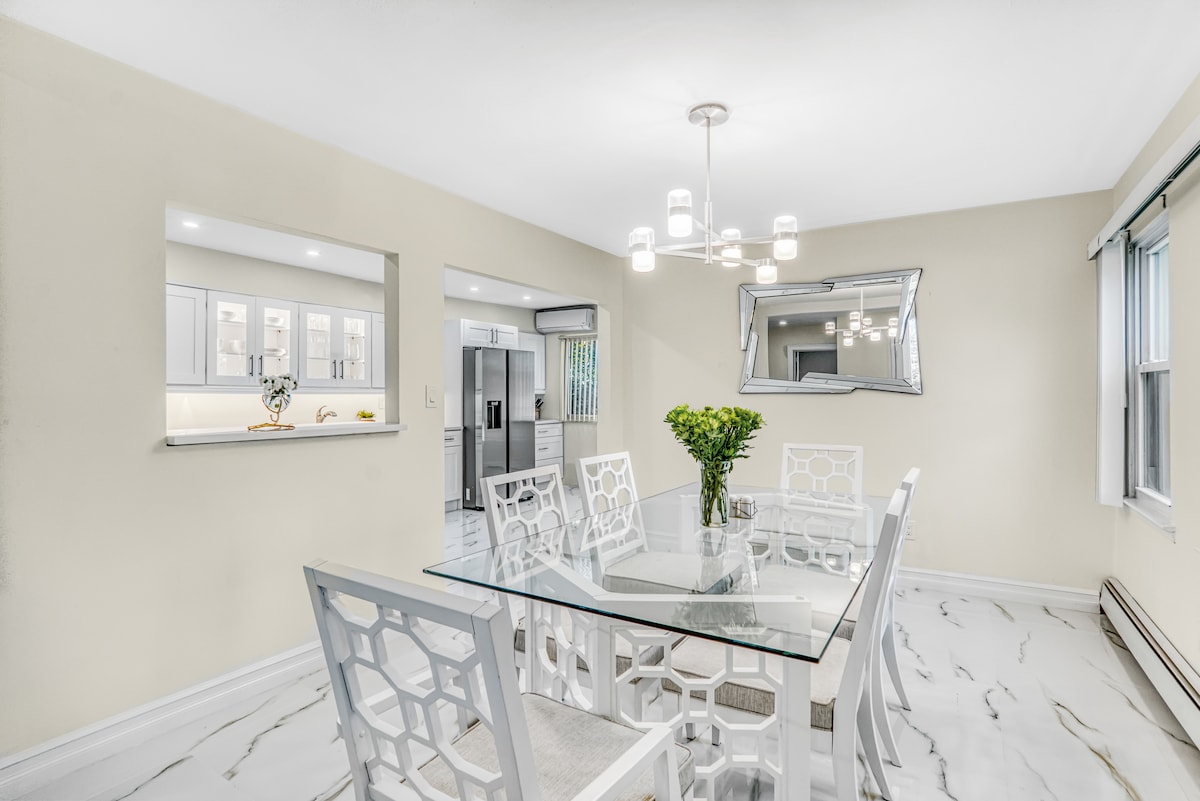 最近翻新的房子,配有現代化的廚房,位於安靜的L.I.街區。非常適合那些尋找安靜和放鬆時光的人。 *度假村風格的後院。(泳池從陣亡將士紀念日開放至9月中旬,視天氣而定) 在這個房源中,您可以使用整套房子、主樓、二樓和地下室,共有5間臥室、2間浴室(可睡14人)。 **禁止舉辦派對或吵鬧的團體,嚴格執行!** *預訂前必須閱讀《房屋守則》