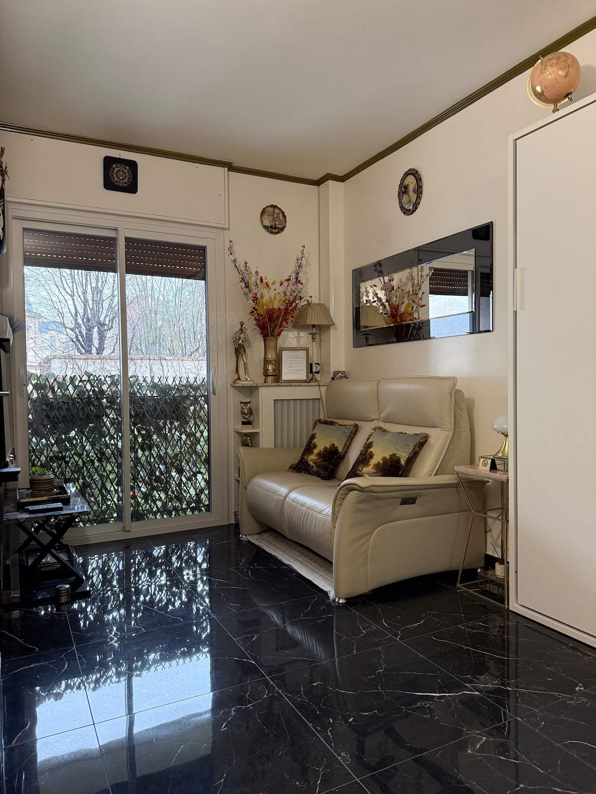 * * Meublé de Tourisme 2星級16平方公尺的單間公寓* * 經由Rue des Belles Feuilles和Avenue Hubert Germain進入 *位於一樓,靠近電梯或樓梯。 *單間公寓有廚房,設備齊全。 *客廳、休閒皮沙發+ Bravia 4K電視 *臥室、衣櫃、2人床、棉床單。 *浴室、步入式淋浴間、恆溫水療、梳妝臺、櫥櫃、馬桶。 - Volvic 水/意式濃縮咖啡/茶 -