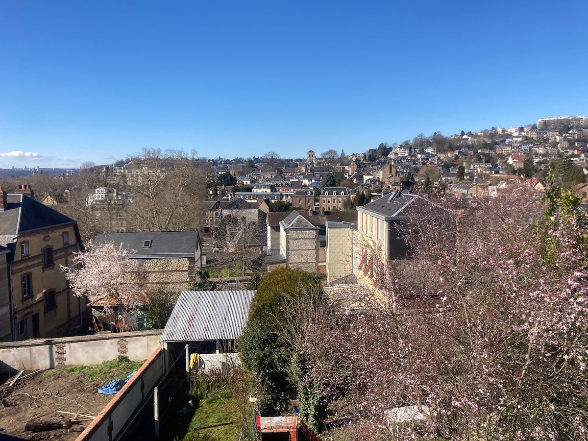 Loue beau F2在安全的住宅中舒適,有陽臺,並在公共交通工具和商店腳下欣賞公園的美景。 步行15分鐘即可抵達魯昂歷史中心。 您會在這裡找到寧靜和舒適。 設備齊全的WiFi ,您只需安頓下來並享受這座美麗城市。 祝您住宿愉快。