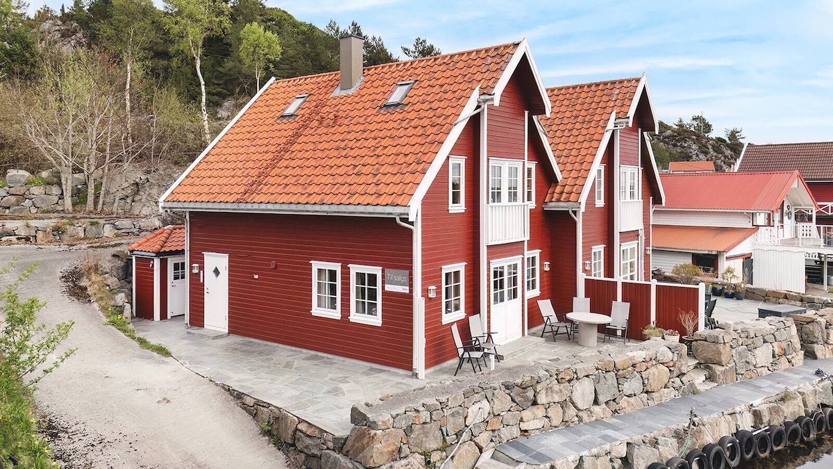 You will find an authentic 1950s house in Bokn with sea views from the living room and proximity to nature and the sea. This is not a perfect cabin, but a colorful home with charm and personality. The "Fyri" sauna can accommodate ten people and is located on the 11-meter-long shoreline with a beach and pier. Here you will find peace and quiet all year round, whether you are a large group of guests or a couple.