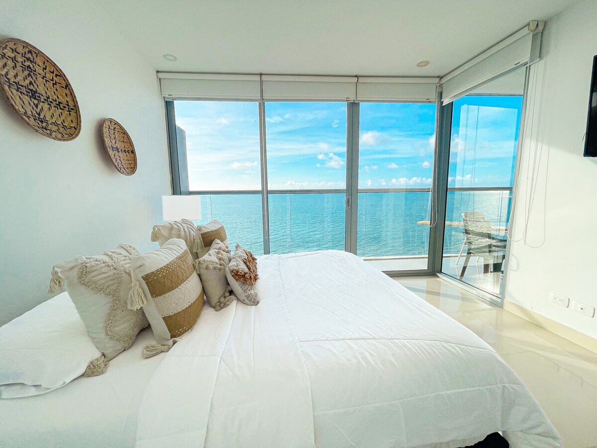 在卡塔赫納博卡格蘭德的莫羅斯城公寓頂層,您可以體驗奢華、舒適和令人嘆為觀止的海景。這間位於菲律賓的公寓非常適合家庭、團體或公司入住,可欣賞到美麗的海洋和哥倫比亞「城牆」的全景;同時還能欣賞到壯觀的日出日落景色,視野約為 300 度。