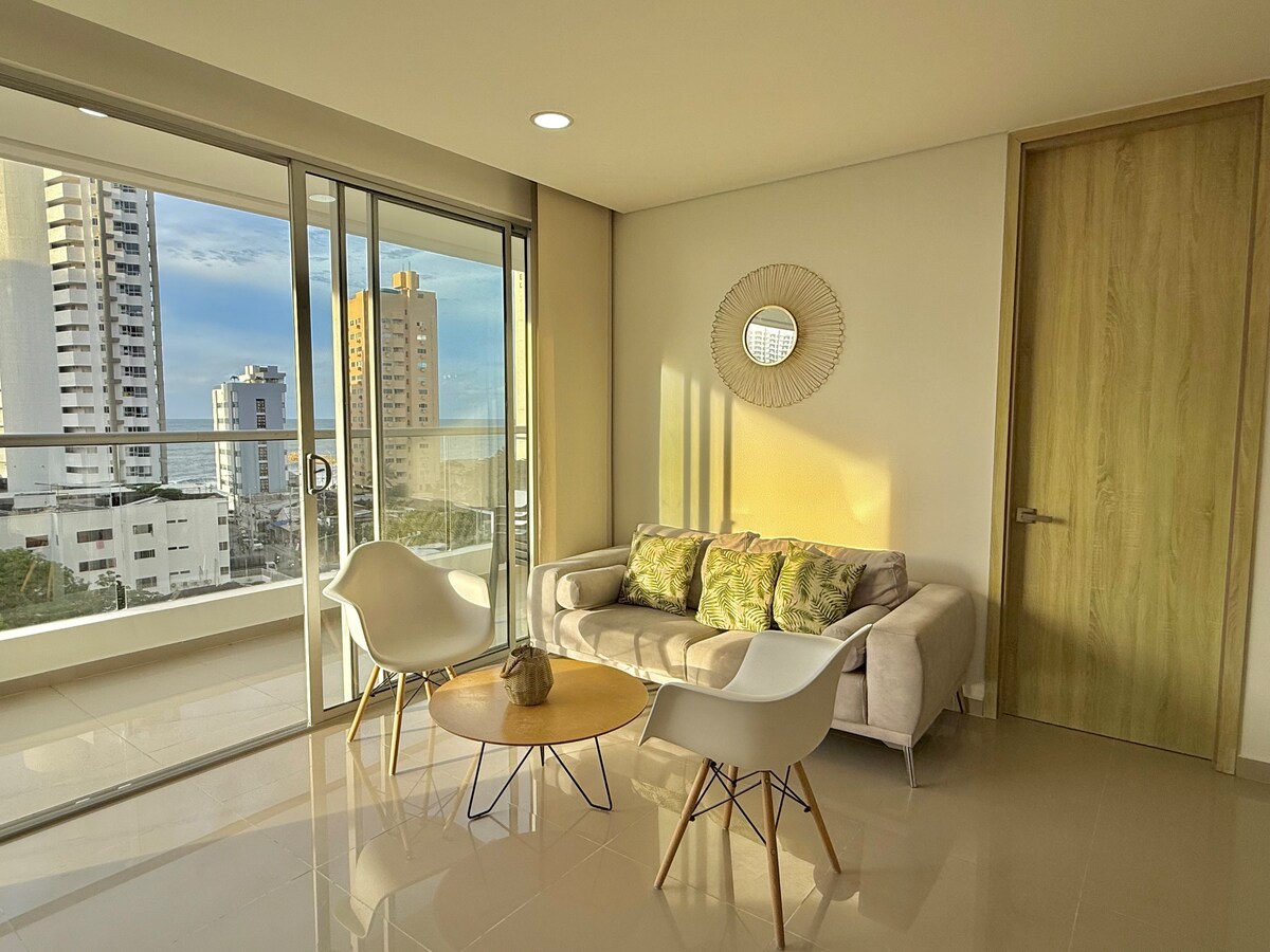 The Beach Radisson Resort Residences的超棒公寓,可欣賞Cienaga、海灘和城市的非凡景色;飯店海灘直達卡塔赫納最美麗的海灘。開車前往機場需5分鐘,前往舊城區(城牆城)需10分鐘。房客可以使用度假村的所有設備與服務,如健身房、多個泳池、酒吧、餐廳、水療中心、天空按摩浴缸、WiFi、空調、烤肉區、24小時前台、保安、行李員、客房服務等。只有登記的房客才可進入公寓