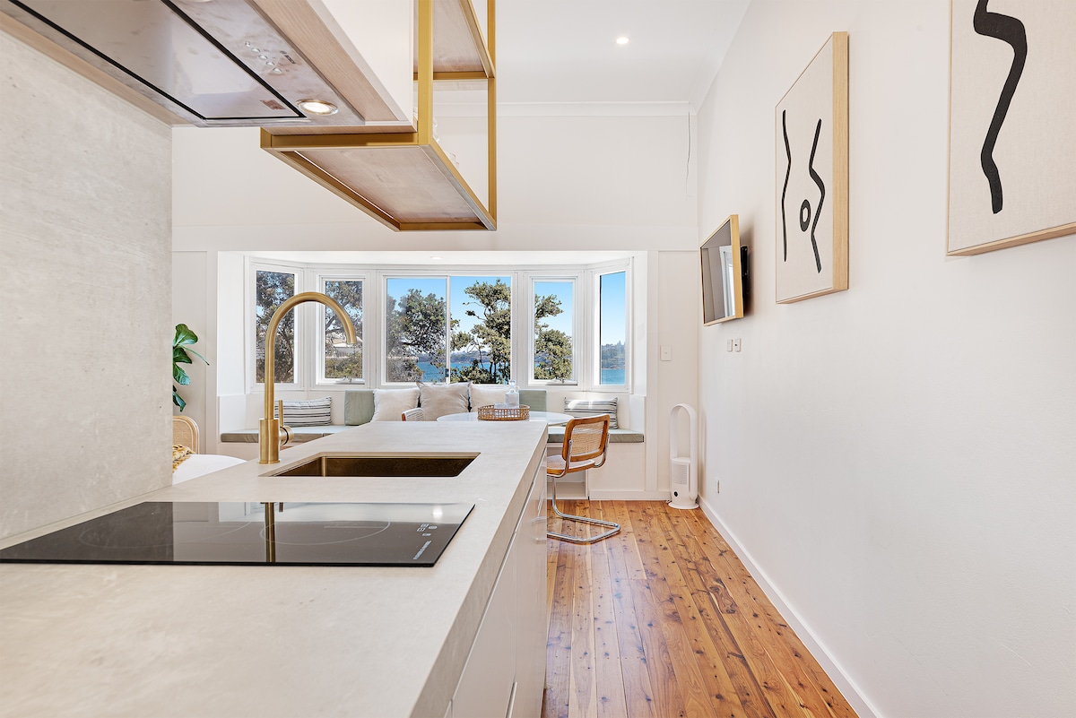 這是全新翻修的設計師公寓,位於頂樓,朝向東北方,坐落在樹頂之間,地平線上可看到海景。 安靜且私密的位置,提供免費街頭停車位,步行10分鐘即可抵達海灘。 享受查令十字路口(Charing Cross)的精品店、咖啡廳、餐廳、酒吧和公共交通。步行20分鐘即可抵達邦迪交叉口Westfield和火車站。附近街道有巴士。 *不適合兒童和嬰幼兒入住。