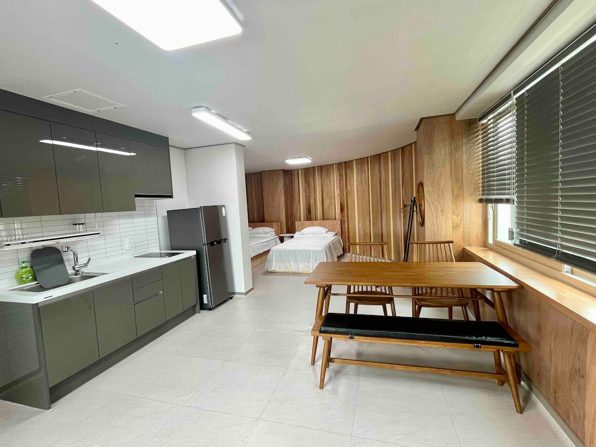 這是一棟與砍伐東海的衝浪者、Jukdo的Hyan白色沙灘和響亮的海浪聲音接壤的房子,以及您可以坐在沙發上看一眼的海灘。 它位於Jukdo海灘,位於東海岸最大的衝浪海岸。 您可以衝浪或享受海上遊泳,然後進入房子。 清晨,您可以在牀上欣賞東海岸的紅色日落,沿著沿海長廊漫步到Jukdo天文臺,衝浪和皮膚水肺潛水,在慵懶的下午在露臺上喝杯咖啡,最後在晚上享用燒烤。 有一家非常靠近衝浪店、咖啡店和便利店。 作爲威基基海灘的名字, Jukdo海灘有各種餐廳,如泰式餐廳、日式餐廳、早午餐店、漢堡店、jamppong餐廳、披薩店、雞肉餐廳等。 衝浪是基本的、皮膚水肺潛水和海上釣魚。 對於那些夢想完美度假的人來 說此房源最適合您。
