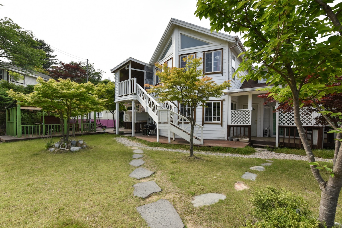 由韓國鄉村住宅的著名公司 Rohas 建造的 34 坪木屋,隔熱效果良好,住宿內的空氣讓您感到舒適。 使用德國式系統窗戶(伊根窗戶),夏季室內涼爽,冬季溫暖,住宿專用(400坪)正前方一級水谷(聖人深水量外嬰兒戲水場),可採摘覆盆子等。這將是一個可以遠離城市,真正放鬆身心,重新充電的空間,有精心種植的季節性花卉和樹木。 *一起生一堆橡木柴火, *一杯葡萄酒和 炭火烤肉(横城韓牛、海鮮等) *治癒水聲ASMR , *花園盛開, *下雪的景觀, * 觀星夜晚 *鳥鳴聲和陽光充足的露臺... *芬蘭桑拿 *我們的房源有很多季節性的房客,有些地方無法用照片展示,希望您能來欣賞和療癒自己^^