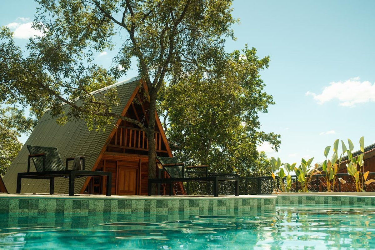 獨立小木屋,非常適合希望享受私隱並接觸大自然的人士。 距離中央廣場 5.5 公里(3.4 英里,車程 8 分鐘),沿著 3 公里(1.9 英里)的泥路,位於 Aquário Natural 路旁。 這處面積達 10,000 平方米的物業由你獨享,設有溫水泳池、設備齊全的廚房、一間配有冷氣和一張大床(另附一張雙人床墊)的睡房、一架望遠鏡、一款懷舊電子遊戲、一個營火炉和一張吊床。 除了設備齊全的空間外,還提供一套床單、浴袍、毛巾以及一般用品(咖啡、糖等)。