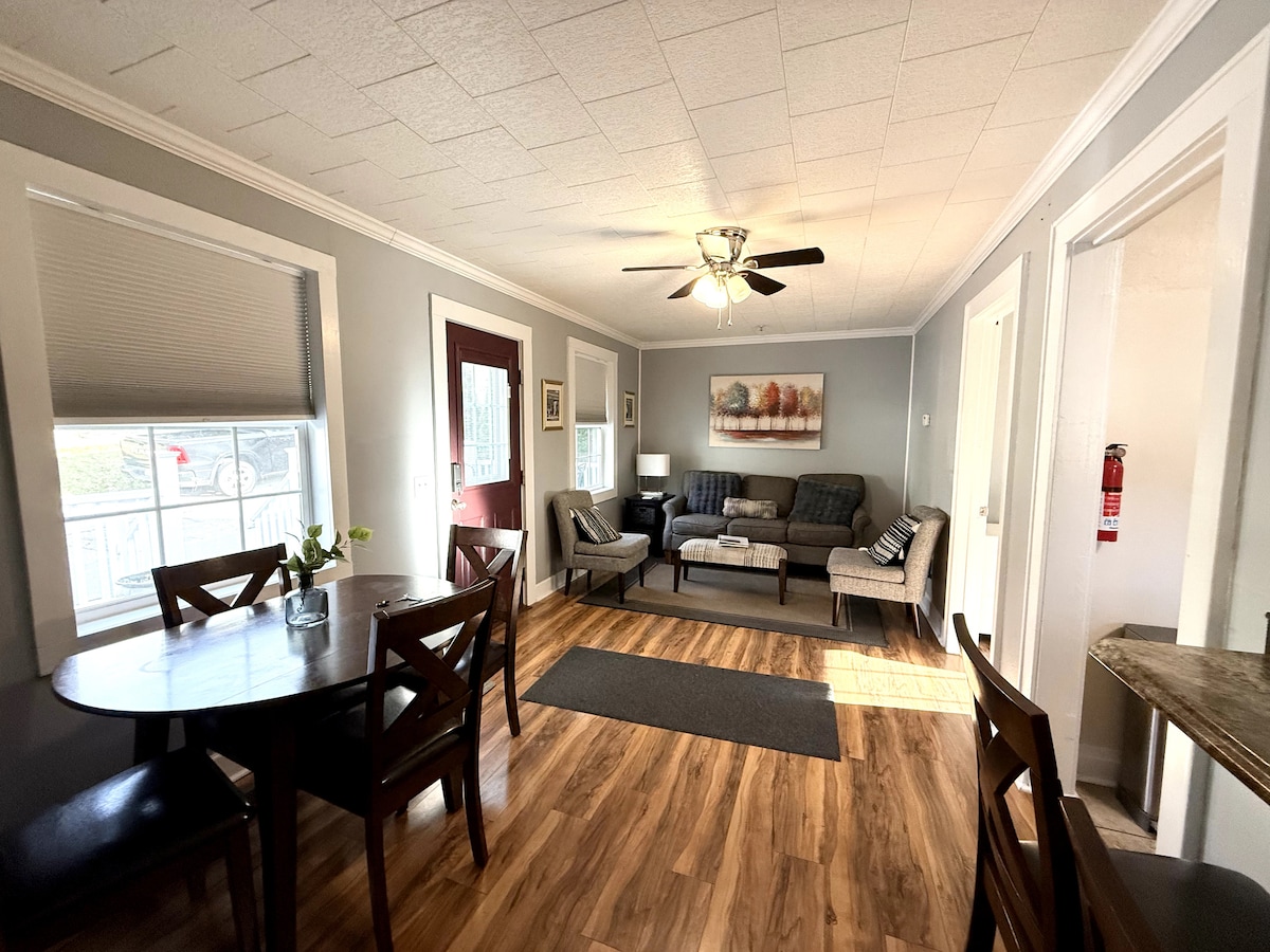 Welcome to Gib's House, a cozy 1-bedroom retreat that is a nod toward simpler times and in honor of a man who could grow it, hunt it, and cook it better than anyone. Gib's House has 1 queen bed with comfortable furnishings and is also wheelchair accessible. Enjoy modern comforts: air conditioning, heating, Wi-Fi, walk in shower, and a refrigerator for your convenience. Whether you're exploring the trails or relaxing indoors, this charming space has everything you need for a comfortable stay.