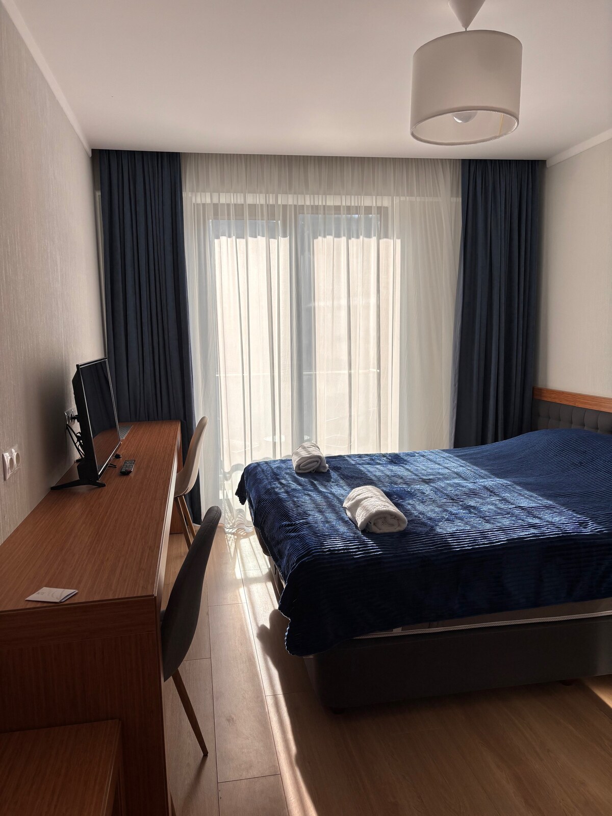 歡迎來到我們位於喬治亞州巴庫裏亞尼市中心的水晶複合式公寓! 我們現代舒適的公寓式酒店提供您在城市中享受美好住宿所需的一切設備。 這套單間公寓最多可容納4位房客,配有一張雙人牀和一張沙發牀。 享受滿足基本需求所需的一切設備與服務的便利。您也可以在水晶建築羣享受遊泳池和水療設施(此處額外付費) ,非常適合放鬆身心。