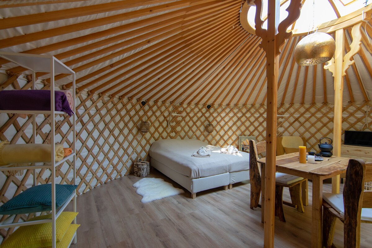 在這座美麗的豪華蒙古包中,您將體驗極致的浪漫和自由感。 從10月到4月,這座蒙古包完全免費,坐落在大自然中,透過大窗戶可欣賞美麗的景色。 加熱燃木爐,享受自由和寧靜。 沒有行動網路和WiFi。 完全遠離一切! 從這裡出發,您可以在特溫特( Twente )享受美麗的徒步旅行和騎自行車。 有很多餐廳,甚至步行即可抵達兩家。 在這個獨特的地點,從內部體驗大自然。讓自己被包圍起來。