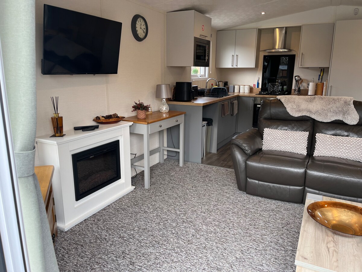 Luxury 3 bedroom lodge for 6 (plus travel cot) with Hot Tub. Located on South Lakeland Leisure Village, a few minutes drive from Junction 35 of the M6, at Carnforth. The lodge has an open plan living/dining and kitchen area. The living area and all 3 bedrooms have smart TV's with Netflix. The master bedroom has a king size bed, walk-In wardrobe and en-suite shower room. 2nd bedroom has 2 single beds and 3rd bedroom has 2 single beds. on-site there is a pub/restaurant looking out onto the lake.