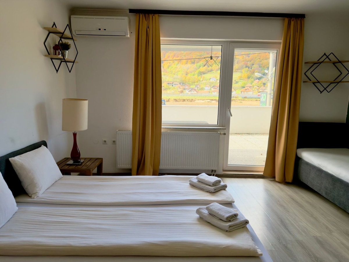 2間客房、廚房、浴室、有線電視/WiFi網路免費 該房源位於薩拉熱窩最古老的街道上的新建築中,距離巴斯卡西亞老城區約750米,坐落在靠近山脈和其他自然和文化景點的安靜山坡上。 它距離市中心步行10分鐘,有公共交通工具。 前往Bascarsija中心的計程車費用為4公裏(約2歐元)。