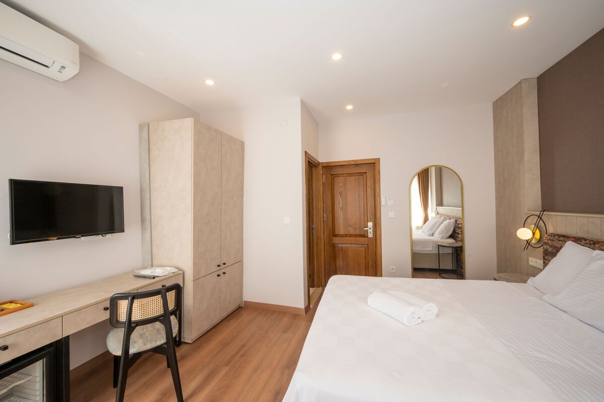 這間獨特的房間經過精心裝飾,結合了現代舒適和懷舊的氛圍。 配備定制木製家具、溫暖的照明和原創牆壁細節,讓您享受愉快的住宿體驗。 步行1分鐘即可抵達Istiklal街,步行3分鐘即可抵達地鐵站,對於那些想探索城市能量的人來說,這是一個很好的選擇。