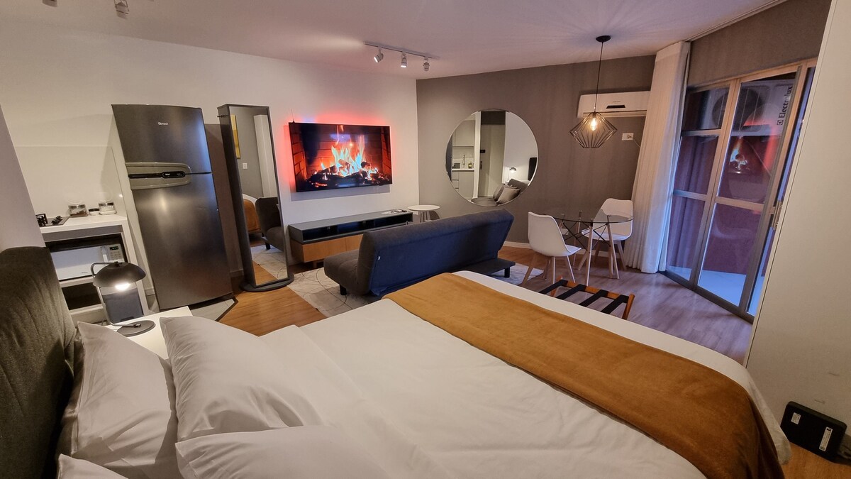 美麗的 Studio Riachuelo XV de Novembro AirB&B 最受歡迎,非常適合情侶或最多 4 位成人在市中心享受庫里奇巴。 單間公寓的整體環境包括設備齊全的廚房、智慧高清電視和帶高壓淋浴的浴室,讓您享受難忘的體驗!