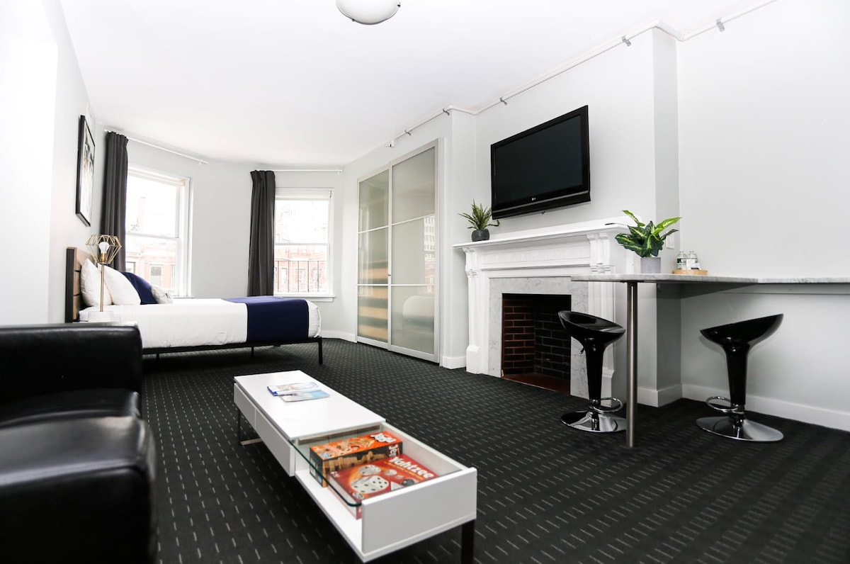 中央廣場豪華單間公寓,配有加大雙人床,麻省理工學院/哈佛