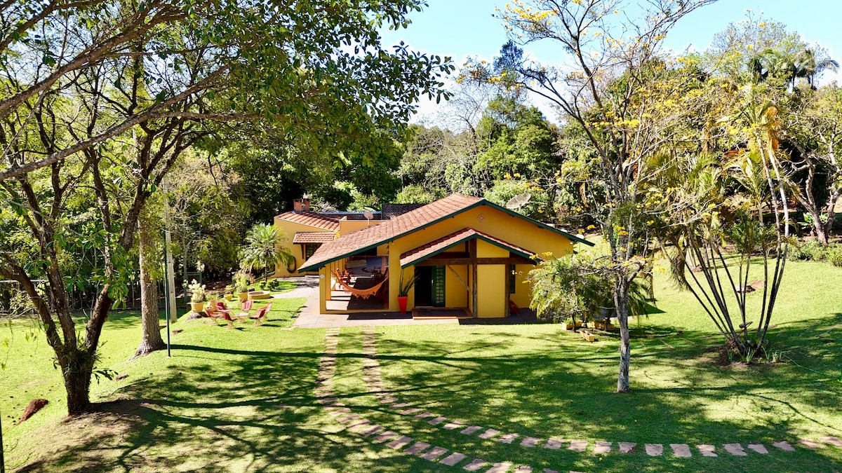 我們位於Cuesta de Botucatu ,靠近Free Flight Ramp (雲端基地) 殖民風格的鄉村別墅供家庭休息,我們不允許現場活動最多可容納13人,我們不允許訪客在住宿期間 靠近鄉村餐廳和瀑布 我們的房源有一些動物! Emus australian marrecos是我們的寵物gaia ,房子的整個區域被籬笆包圍,可接待友善的寵物 房源內沒有殘留物,我住在隔壁的房源