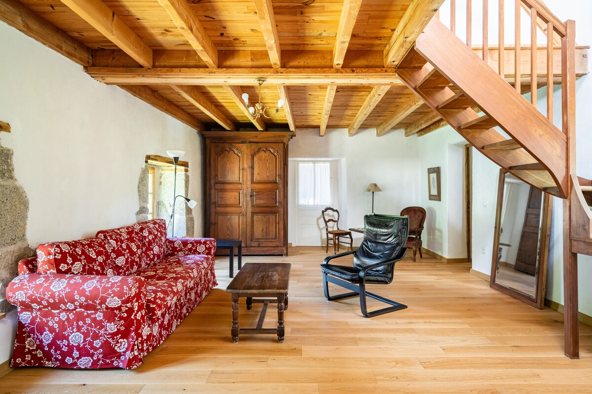 Bienvenue dans ce cocon de 50 m² au cœur du Parc naturel du Pilat, situé au dessus du centre de Bien-être "La ReSourceRie" Après une journée au grand air entre balades, raquettes ou ski de fond à proximité, retrouvez un logement chaleureux et reposant. L’hiver dans le Pilat rime avec nature, calme et cocooning. Vous disposerez d'une chambre avec lit double, un salon accueillant, une cuisine équipée, une salle de bain privative Un espace buanderie commun au RDC Draps, serviettes et wifi inclus