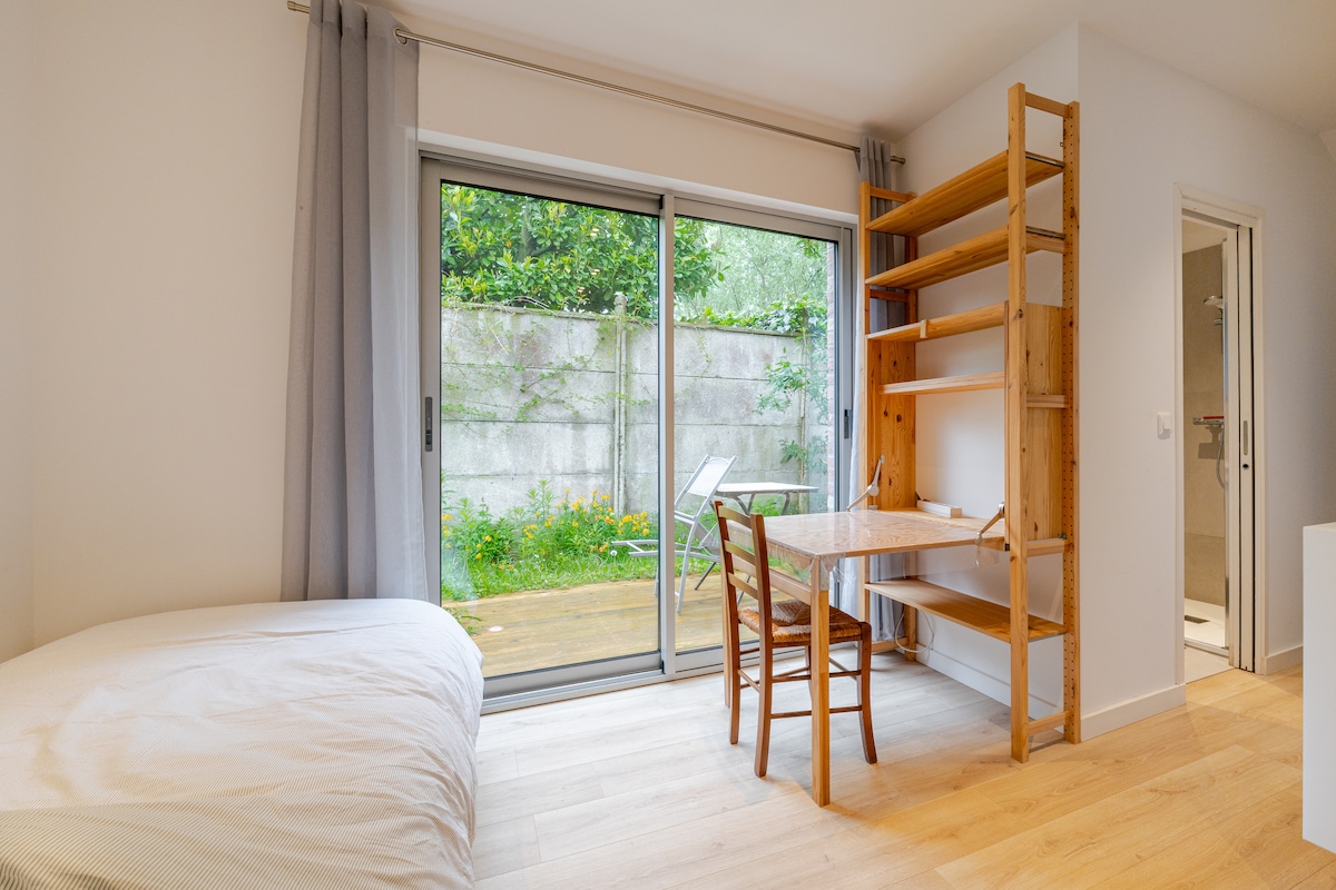Suite cosy neuve et indépendante située au rez-de-chaussée de notre maison. Elle se compose d'une pièce spacieuse de plus de 20m2 avec un grand lit double (160x200), un coin salon, un coin bureau et un dressing. Elle possède également une salle d'eau avec WC et une terasse privative. Stationnement gratuit dans la rue. À proximité, accessible à pieds : centre ville, commerces, restaurants, gare routière et gare TGV, transports en commun (metro, bus, tramway, V'lib).