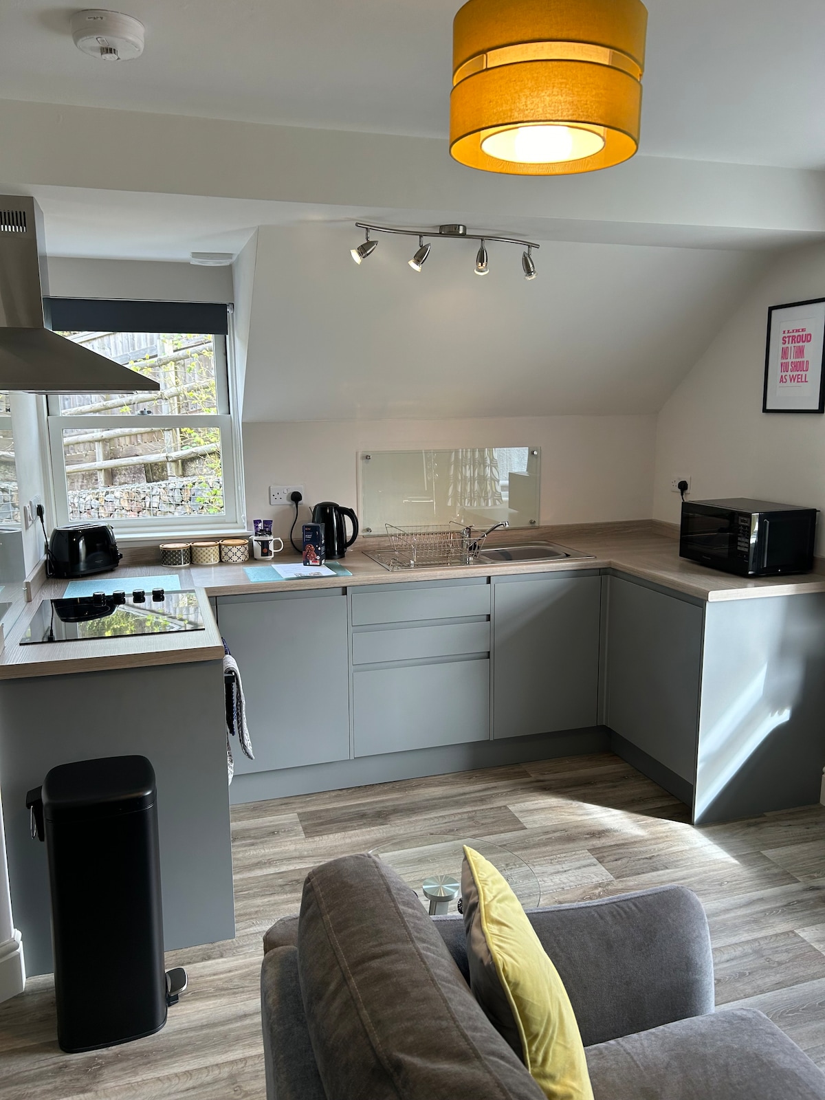 我很高興邀請您來到我們新翻修的獨立且環保的一樓公寓,步行五分鐘即可抵達火車站以及Stroud的咖啡廳、酒吧和餐廳。 我們的房源非常適合情侶、朋友或商務差旅人士。 步行5分鐘即可抵達咖啡館、酒吧、餐廳和商店。 Stroud屢獲殊榮的市場每週六都會舉辦。 公寓位於我們的房子內,與主屋共用前門。