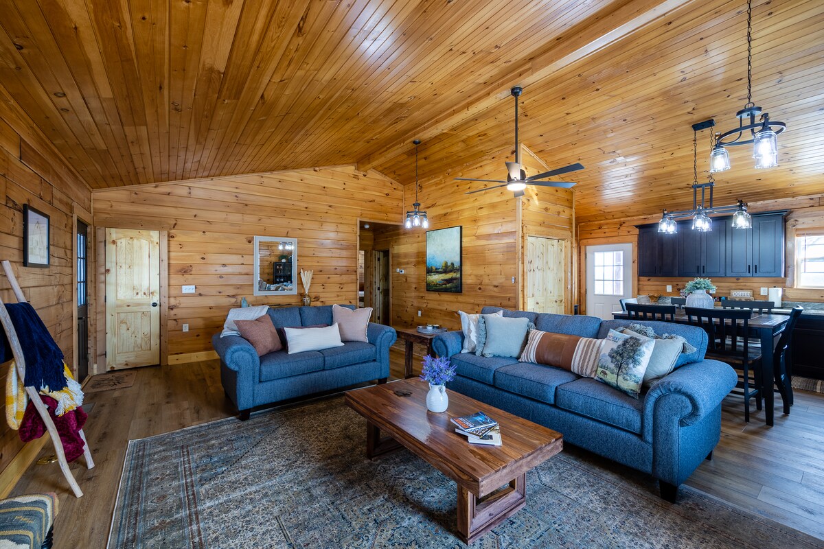 歡迎來到我們風景如畫的146英畝農場的舒適小屋! 逃離到一個美麗的改造小屋,坐落在牛農場的起伏山丘上。從前後門廊可欣賞全景。無論您是想放鬆身心,享受古樸、寧靜的鄉村環境,還是探索附近的景點,這間2023年翻新的小木屋都是您完美的度假勝地。 地理位置方便,距離斯科茨維爾(Scottsville)僅10分鐘路程,距離鮑靈格林(Bowling Green)僅15分鐘路程,距離巴倫河湖(Barren River Lake)僅15分鐘路程。