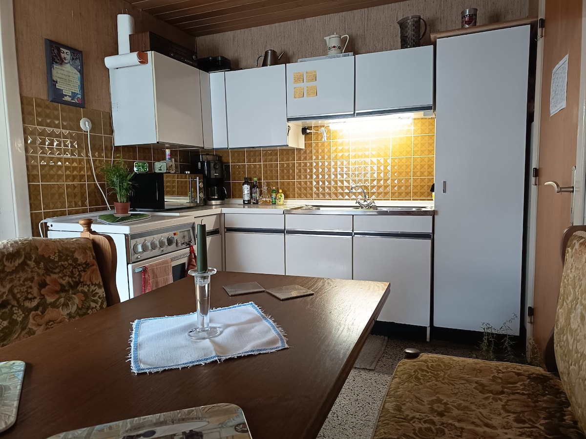 歡迎來到我們的家! 在我們的房子後面,有一間全新的現代化公寓,非常適合您放鬆身心。配備一個夏季廚房,讓您享受烹飪的樂趣;一個時尚的淋浴間和一個開放式臥室,配有一張舒適的雙人床(1.60 x 2.00 公尺),讓您享受最佳的設施。在綠色的私人木製露臺上,您可以放鬆地享用早晨的咖啡和舒適的葡萄酒之夜。最棒的是什麼?整套公寓都歸您們使用——沒有壓力,只有安寧!