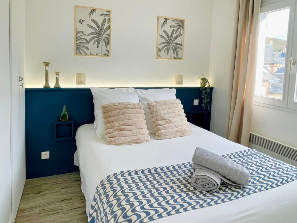 歡迎入住這間 25 平方公尺的美麗公寓,享受「海灘小屋」裝飾的全海景! 該公寓於 2024 年夏季全面翻新,位於海濱,距離濱海維勒市中心僅幾步之遙:非常適合享受海灘、城市及其活動。 - 提供床單和毛巾 - WiFi 和智慧電視 - 1 間小臥室,配有 140x190 公分的床 - 客廳配有非常舒適的 140x190 公分可折疊沙發 - 設備齊全的廚房 - 入口處有辦公區