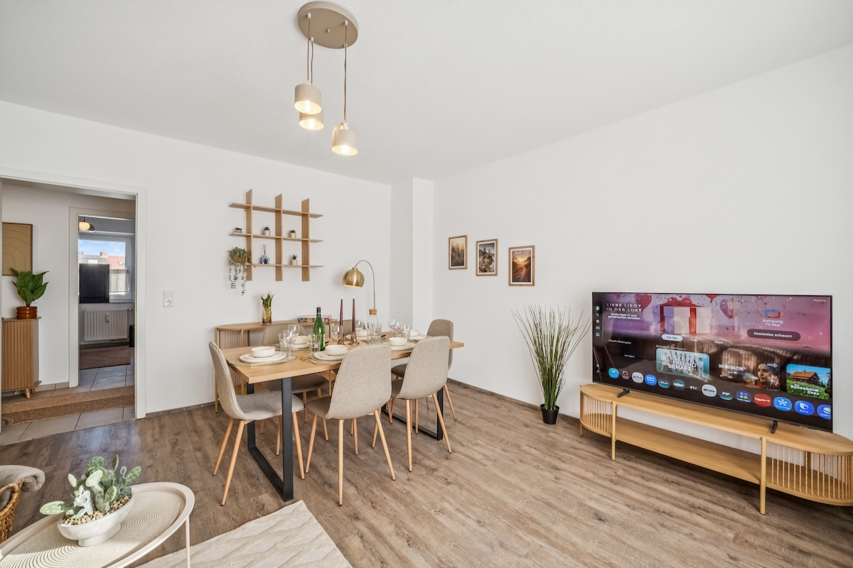 Dieses stilvolle Apartment bietet eine ideale Kombination aus Komfort und zentraler Lage. In nur 15 Gehminuten erreichen Sie die Innenstadt, eine Bahnhaltestelle liegt 2 Minuten entfernt. Ein privater Parkplatz gehört direkt zur Unterkunft. Ein fester Arbeitsplatz mit schnellem Internet ermöglicht produktives Arbeiten. Die Küche ist voll ausgestattet, das 1,40 m Boxspringbett sowie der Smart-TV (Netflix, DAZN, YouTube) sorgen für Entspannung. Essentials wie Bettwäsche sind inklusive.