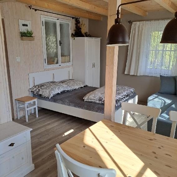 房源建於2016年,採用簡約但現代風格,採用實木元素。 住宿設有獨立浴室,配有淋浴間、馬桶和水槽。 走廊特別用於存放行李、頂部,並配有衣櫃。 起居空間本身比比皆是,設有設備齊全的小廚房,設有冰箱、MW和電爐。 睡眠區位於起居室的底部和獨立的木地板上。