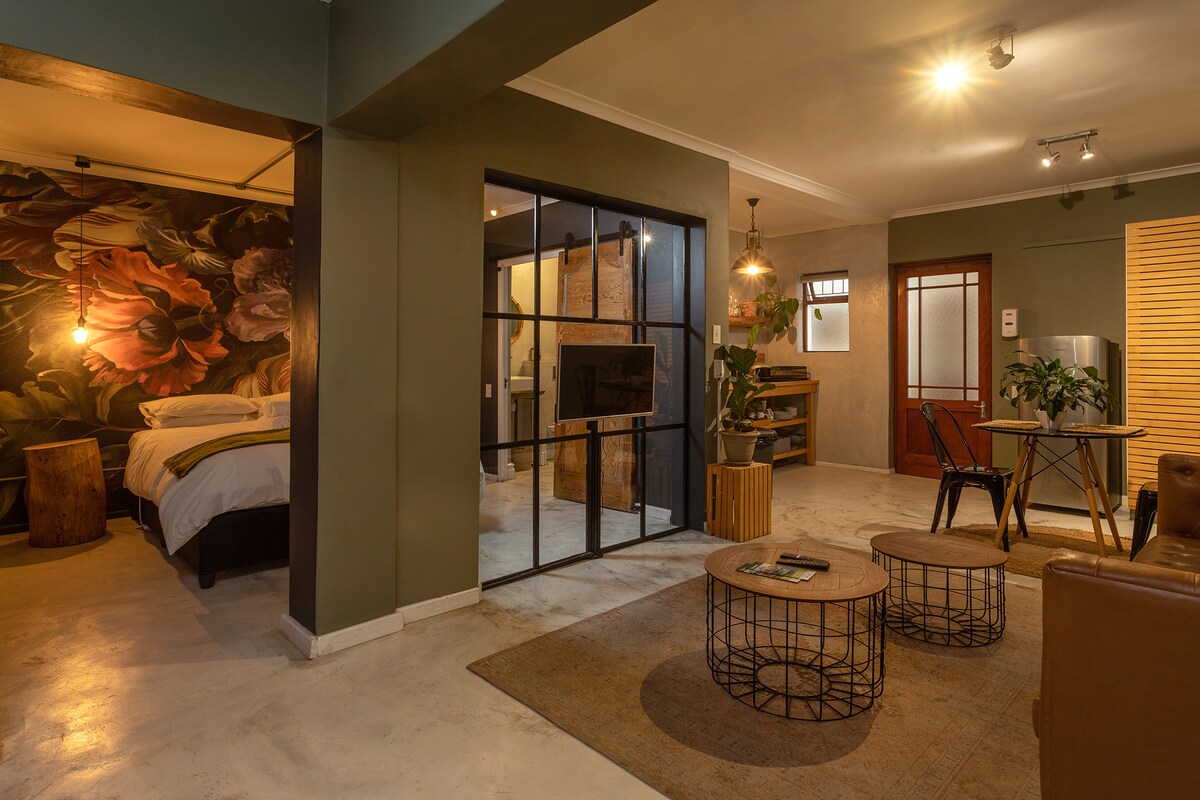 入住Hermanus的私人度假勝地The Studio Room,設有獨立入口和樓梯。 在陽光明媚的甲板上放鬆身心,享受躺椅、燒烤和山景。 這個開放式空間融合了舒適的睡眠、用餐和小廚房區域,而浴室(浴缸和淋浴)則是私人空間,設有門。 享受現代化的舒適設施,如空調、Wi-Fi、DSTV 和 Nespresso。 非常適合尋求安寧和私隱的情侶。 12歲以下的兒童不得入住。 小廚房有:烤麵包機、水壺、迷你烤箱和冰箱。