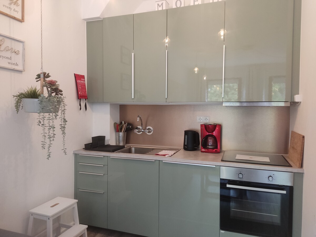 這間獨立公寓(約20平方公尺)位於我們房子的一樓,面向後院。 房間內有一張舒適的大雙人床(180 x 200)和一個休息區。通往獨立浴室的走廊上有一個設備齊全的小廚房,配有冰箱、爐子和烤箱。我們的房子位於市中心,步行5分鐘即可抵達所有景點,步行10分鐘即可抵達中央火車站。
