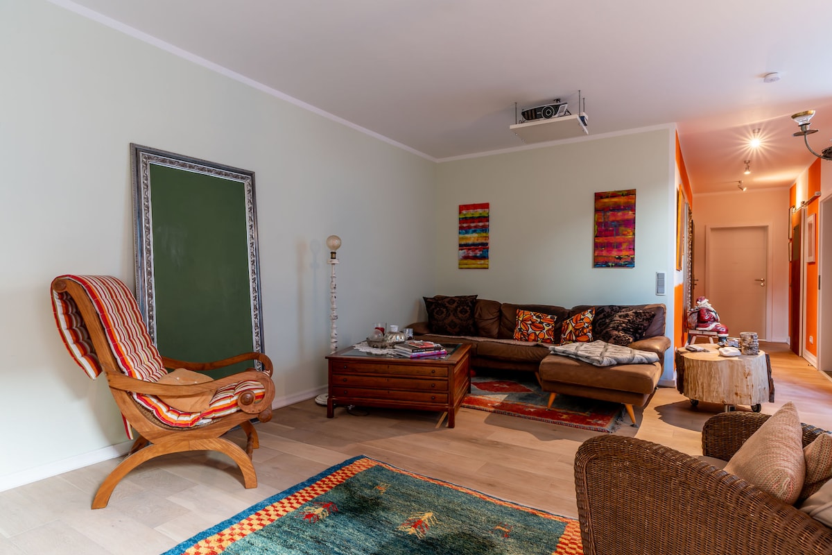 第一位房客需支付 75 歐元,每位額外房客需支付 25 歐元。 這間 100 平方公尺的公寓位於一棟受保護的建築物中,擁有大露臺,坐落在田園詩般的 Knoops 公園的地中海花園中。步行即可抵達附近的河流,是騎自行車的理想起點。擁有歷史悠久港口的海事 Vegesack 與不來梅市中心都可以乘坐公共交通工具 交通工具。 距離巴士站 100 公尺,距離火車站 850 公尺。