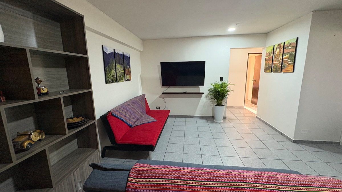迷你公寓,配有房間、設備齊全的廚房和獨立浴室。獨立入口,大樓內有室外攝影機。翻新、照明和通風、雙人床、智慧電視、冰箱、微波爐等。 地理位置優越,距離聖馬科斯大學 10 分鐘,距離 PUPC 8 分鐘,距離 URM 5 分鐘,安靜且位於市中心,四周有公園,靠近主要大道,有多條交通線路。 距離聖米格爾廣場 (Plaza San Miguel) 15 分鐘,靠近博物館、超市和各種餐廳。