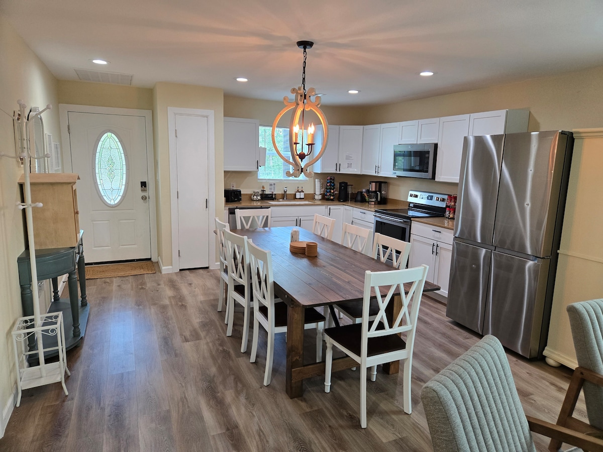 Welcome to the Dragonfly at Brenham, this newly renovated home is steps from downtown and is great for family getaways and nature exploring. Bring the whole family to this great place with lots of room for fun. With 4 bedrooms and 2 full bathrooms you will get all the space you need. Plus you can enjoy the nature and fire pit under the canopy on the backyard. This home can accommodate 8 guests in 1 King size bed, 1 queen size bed, 1 double bed and 2 twin size beds with new and fresh linens.