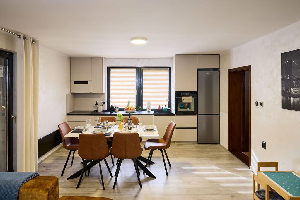 Forest Vila 01, a traditional Slavonian house with a modern touch, sits in the heart of Papuk Nature Park, surrounded by pristine nature. Perfect for families and pets. In winter, enjoy the jacuzzi and Finnish sauna; in summer, the pool (May–Oct) with sunbeds and playground. Covered terrace with BBQ and brick oven, plus billiards, table football and darts. Nearby: cycling trails, Duboka Adventure Park, and the House of the Pannonian Sea.