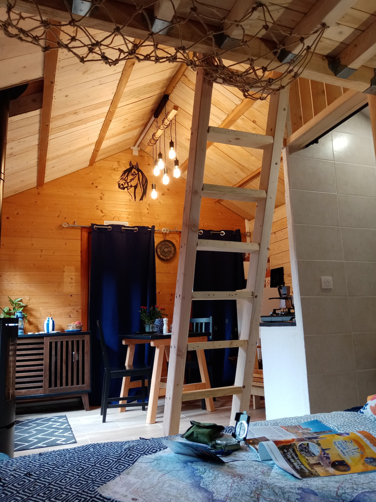 Une vue sur les monts du Forez, en pleine nature avec les animaux (ânes, chèvre, poneys). Un havre de paix qui vous invite à la détente et au calme. On vous propose un déconnexion hors du temps dans cette cabane à étage très lumineuse. Un lodge tout confort, moderne et neuf construit par un architecte local. Tout y est : cuisine équipée, salle de bain, un canapé convertible, un filet de détente, un grand lit sur la mezzanine, une immense pergola pour les dîners dehors. 2 adultes+2 enfants max