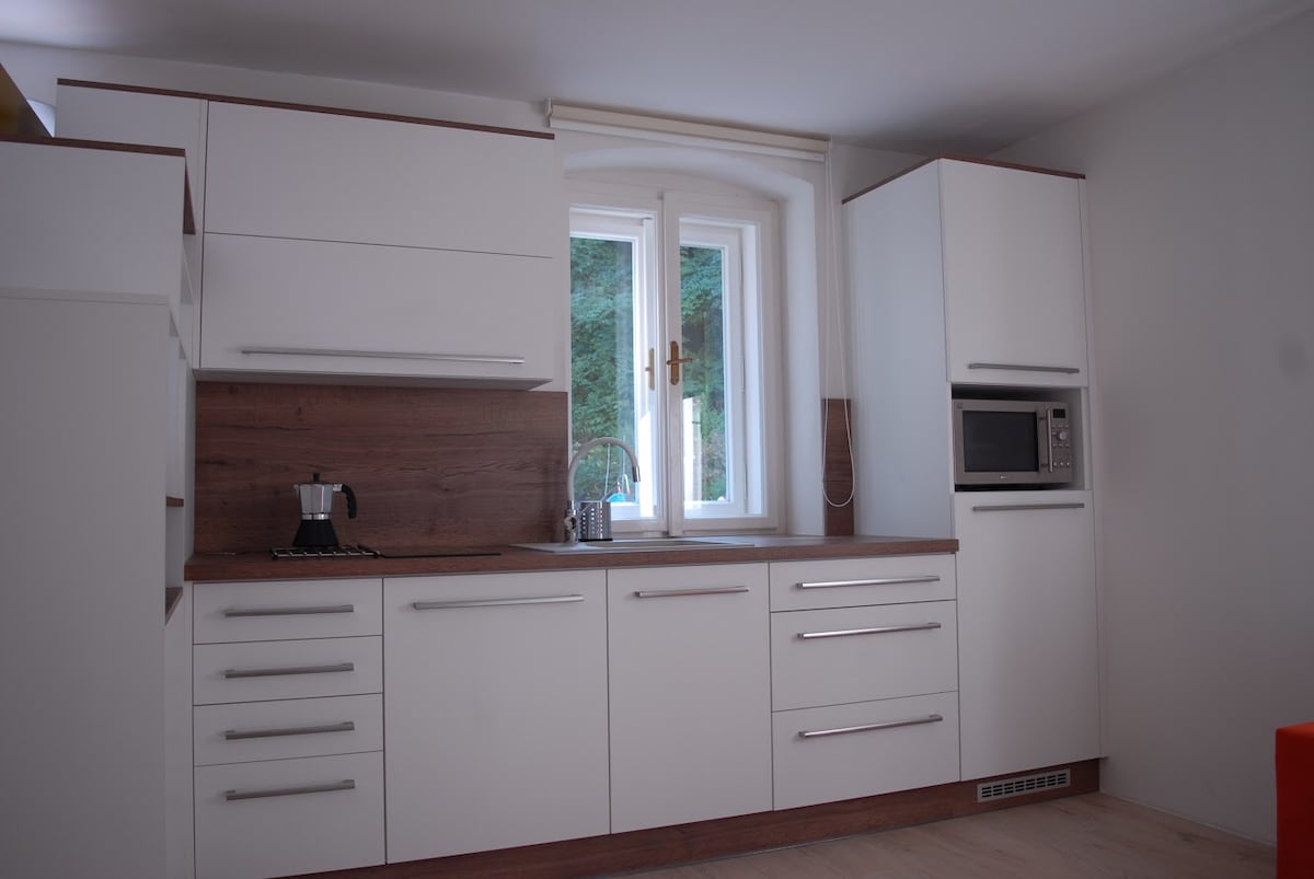 您有多少次可以選擇入住正確的城堡洗衣房? 您可以每天入住。 我們重建了18世紀的前狩獵小屋,後來又重建了Veveří城堡的洗衣房,讓每位遊客都能在這裡享受愉快的住宿體驗,但同時也沒有錯過獨特的歷史氛圍。 在舊洗衣房( Old Laundry ) ,寬敞的公寓最多可容納4位房客,您將享受當之無愧的和平和風景如畫的大自然。 住宿位於Podkomorské森林中間,就在Veveří城堡下方。