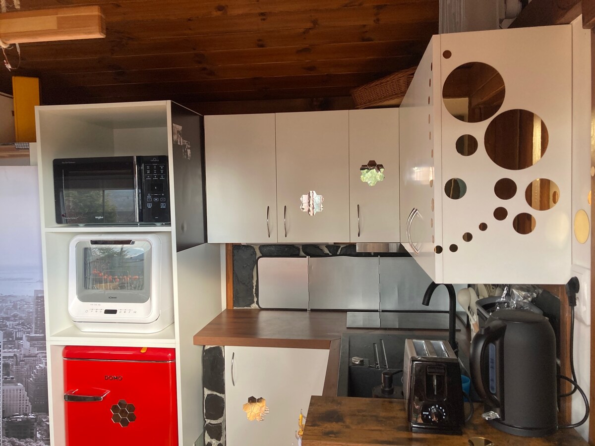Do you want to be in nature and switch off from the hustle and bustle? Tiny is ideal for relaxation. An undisturbed space where the daytime set-up for eating and sitting alternates with a space for sleeping in the evening. Spacious terrace with seating for eating, a covered veranda with food preparation. Exercisers have a tiny fitness here Lots of entertainment options for adults : swimming in the biotope (only for swimmers), high chess, lower terrace with loungers, lying down by the biotope