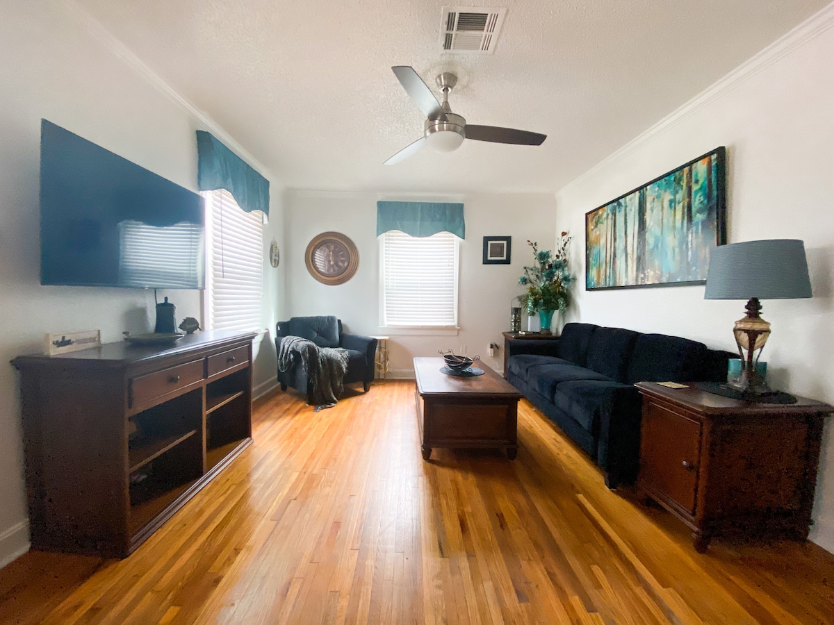 Escape to comfort, style, and luxury in this beautifully renovated 2,000 sq ft South Tulsa duplex — perfect for families, groups, or extended stays. • Private backyard w/ patio, BBQ grill & seating • 75” Roku TV in living room + 55” TVs in 3 bedrooms • King bed in master w/ memory foam mattresses • Fully stocked kitchen w/ granite counters & Keurig • Games • Garage parking + self check-in • W/D • Electric fireplace • Pack-N-Play & high chair • Dog-friendly (3 max, under 80 lbs, $100 fee)