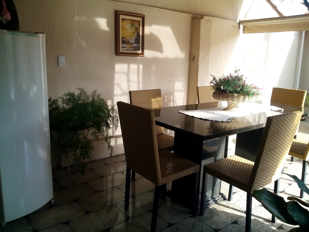100%私人住宿 市中心的小亭,配有特大床、單人床、額外床墊(包括床、桌子和浴巾、乾淨、芬芳)、電視、天花板風扇、空調、Wi-Fi、01個停車位、電子門、燒烤和全套廚房,所有這些都專為房客提供,並享有完全隱私。 完全獨立使用。* * *每晚的金額是情侶的住宿費用* * *「護送將每人每天支付$ 100雷亞爾!」