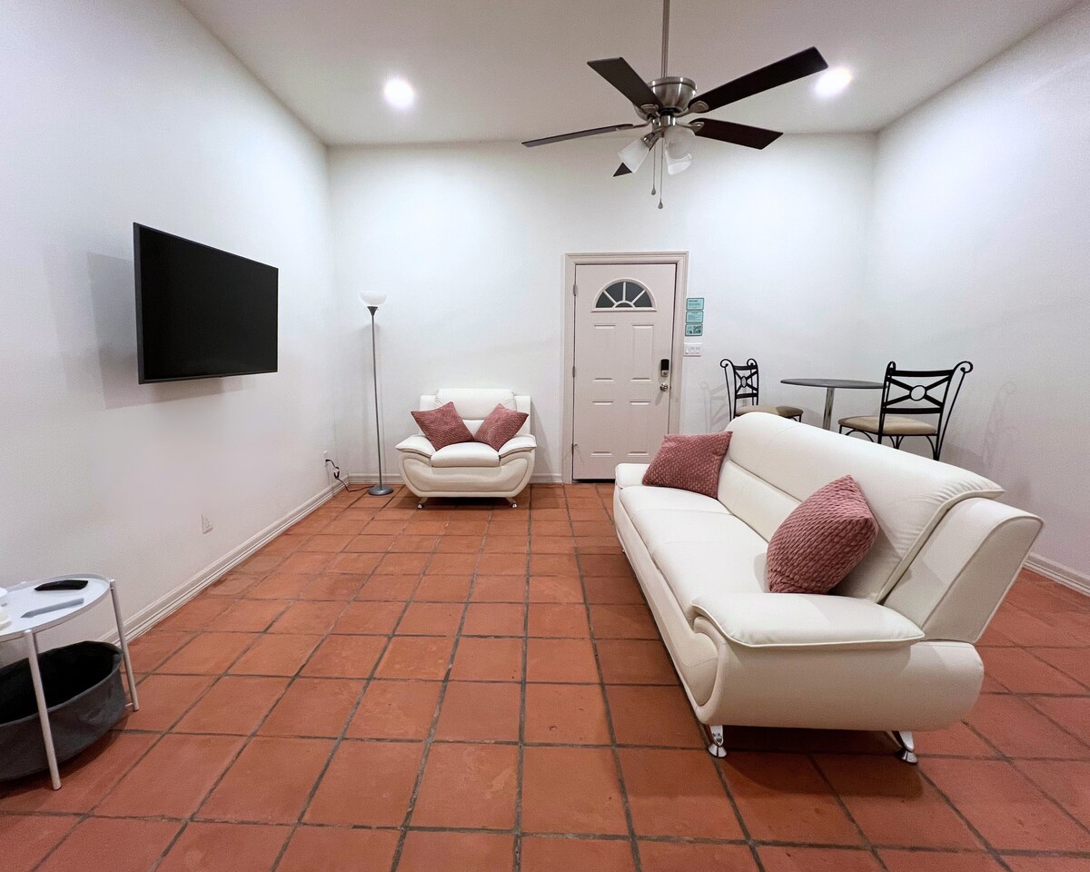 入住這間位處中心地段的房源,全家到哪都方便。在這間全新的開放式概念單間公寓放鬆身心,距離南帕德雷島(South Padre Island)39分鐘,距離SpaceX 36分鐘,距離日出購物中心(Sunrise Mall)10分鐘,距離沃爾瑪(Walmart)、沃爾格林(Walgreens)、HEB Plus 5分鐘,距離布朗斯維爾機場(Brownsville Airport)15分鐘,靠近許多優質餐廳和酒吧,距離布朗斯維爾市中心(Downtown Brownsville)15分鐘。