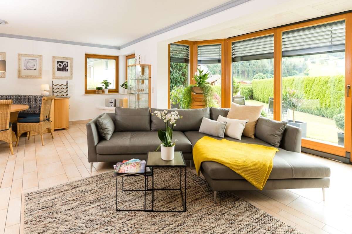 我們約90平方米的公寓位於我們房子的一樓,有自己的入口,設備齊全! 可直接通過光線充足的起居區前往露台和花園。 距離策爾湖和基茨泰因霍恩冰川只有幾分鐘車程! 我們是冬季和夏季完美假期的正確地址! 奧地利最受歡迎的遊覽目的地之一——大格洛克納(Großglockner)將在您的腳下!