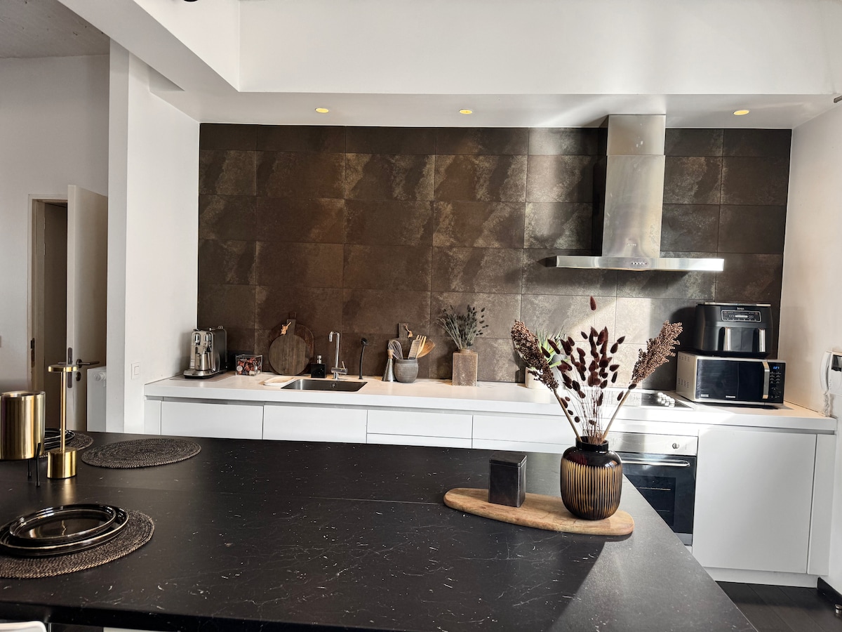 Reservations are exclusively available to verified profiles with positive feedback. The loft, 155m², is a converted warehouse originally built in 1924. It is situated in the canal zone, close to the iconic Tour & Taxis business center and exhibition complex, which is easily accessible via a newly developed park. Once an abandoned industrial quarter, the Tour & Taxis neighbourhood is now undergoing a rapid and fascinating transformation, guided by modern social and sustainability principles.